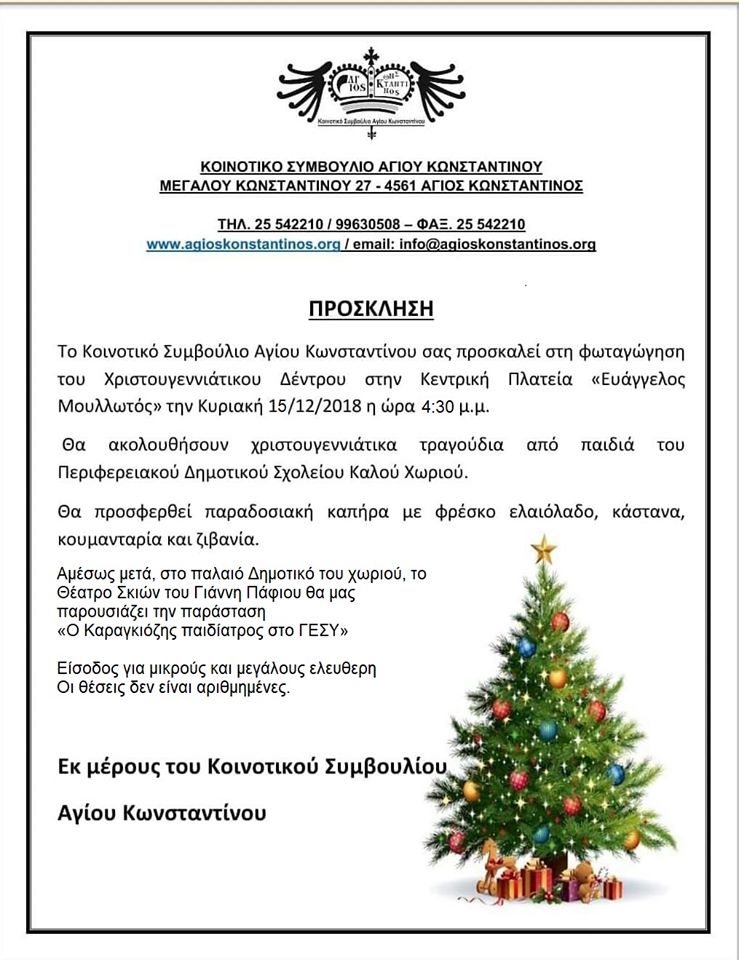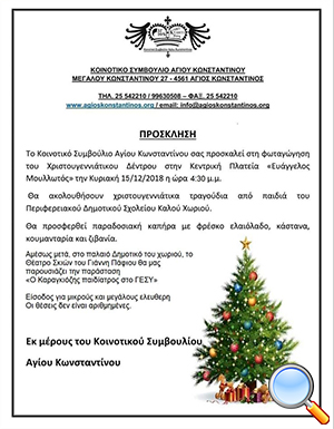 Φωταγώγηση Χριστουγεννιάτικου Δέντρου 15/12/2019