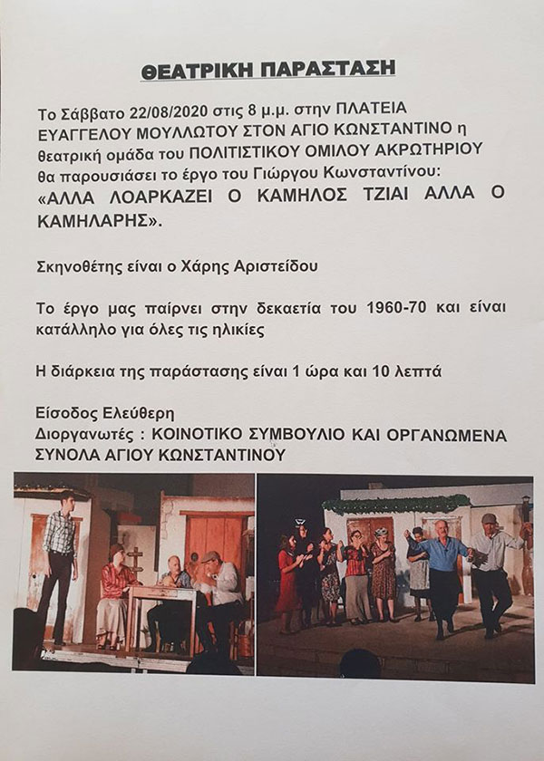ΘΕΑΤΡΟ ΣΤΗΝ ΚΟΙΝΟΤΗΤΑ ΜΑΣ 22/8/2020